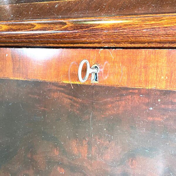 アンティーク ライティングビューロー マホガニー 象嵌 鍵付き デスク